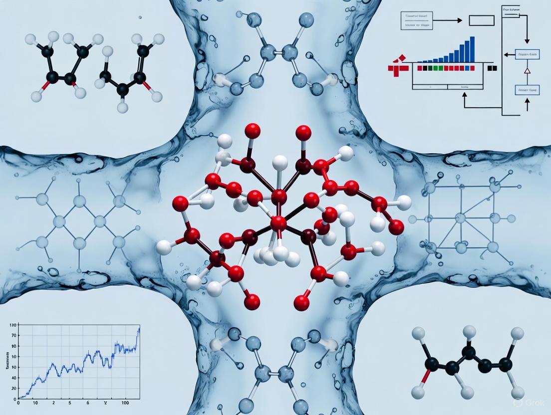 FAQ 5: Is there an experimental way to validate the role of water in my protein-ligand complex? Yes, several biophysical techniques can probe hydration. Nuclear Magnetic Resonance (NMR) can be used to measure concurrent adsorption of hydration water and bound ligands, revealing hydration thresholds required for binding [4]. Overhauser Dynamic Nuclear Polarization (ODNP) can probe site-specific hydration water dynamics and heterogeneity on protein surfaces in dilute solution [5]. High-precision calorimetry can measure heat changes during molecular interactions, helping to quantify the thermodynamic contribution of water displacement [2].