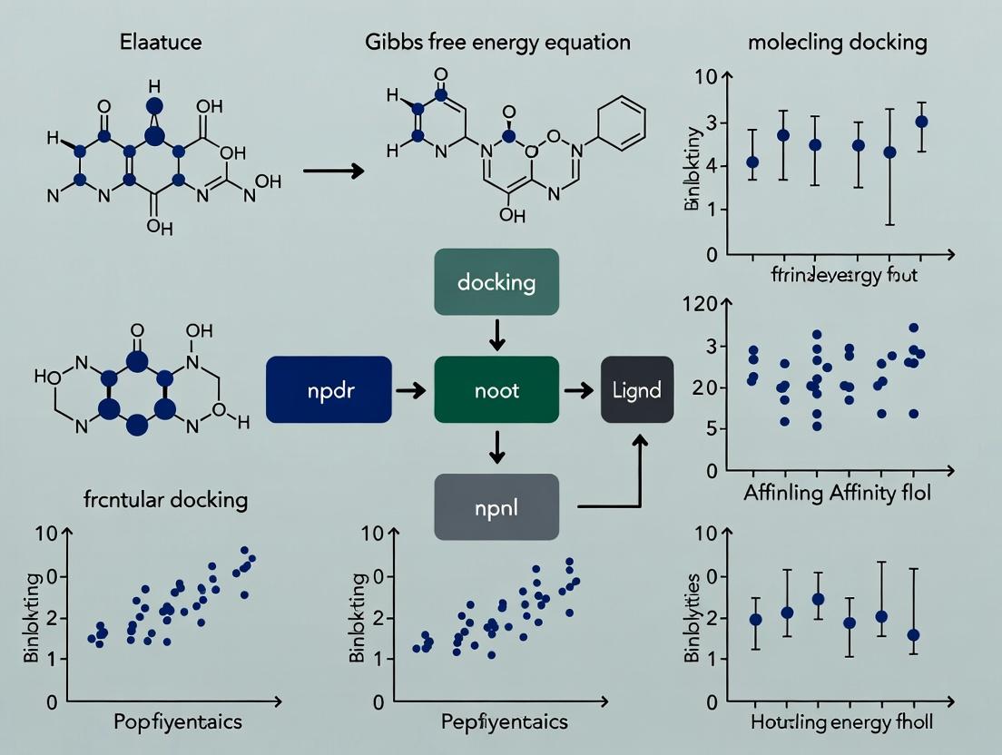 Molecular docking is a computational technique that predicts the preferred orientation and binding affinity of a small molecule (ligand) to a target macromolecule (receptor). The primary goal is to estimate the strength of this association, which is thermodynamically governed by the change in Gibbs free energy (ΔG) of binding. The Gibbs free energy equation, ΔG = ΔH - TΔS, forms the fundamental cornerstone of docking research. A favorable (negative) ΔG indicates spontaneous binding, driven by an interplay of enthalpic (ΔH) gains from the formation of non-covalent interactions and entropic (ΔS) penalties or gains from changes in solvation and conformational freedom.